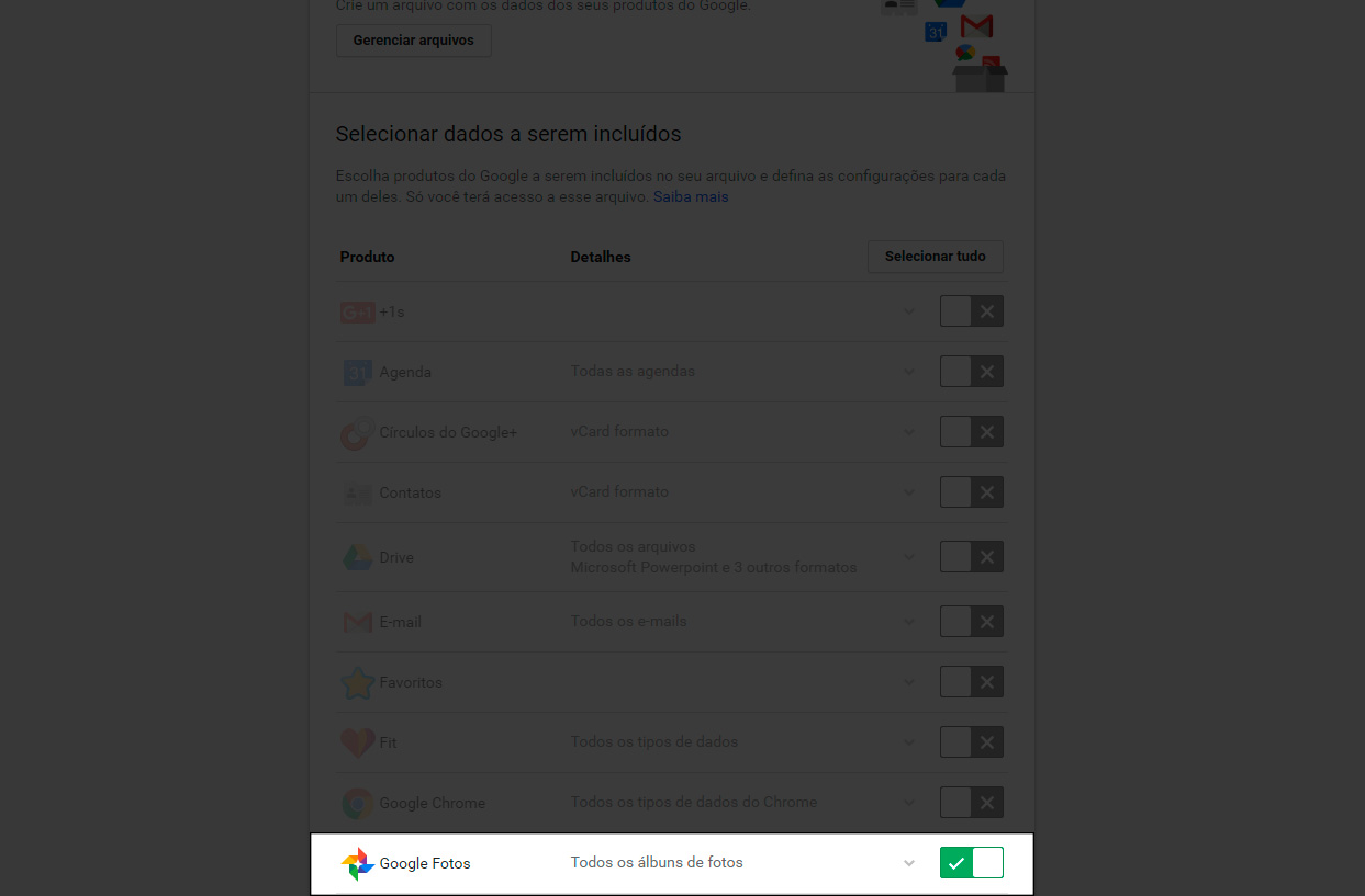 3. Deixe selecionado somente o “Google Fotos” e clique em “Próxima”.
