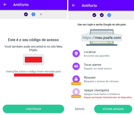 Para que a proteção avançada contra roubos e perdas seja ativa, basta seguir os passos:
