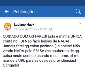 No caso do Luciano Huck, os perfis falsos usavam a sua foto para parecem reais. Depois, entravam em contato com os seguidores do apresentador, através de chat, ofereciam prêmios e participações em programa de televisão e pediam dinheiro em troca. Na época, Luciano Huck publicou em seu perfil oficial que tudo se tratava de um golpe.