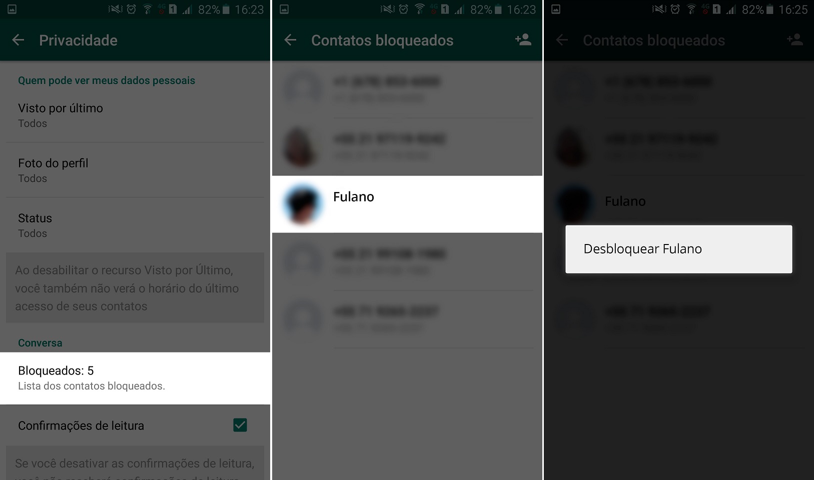 Você pode bloquear e desbloquear contatos salvos e não salvos