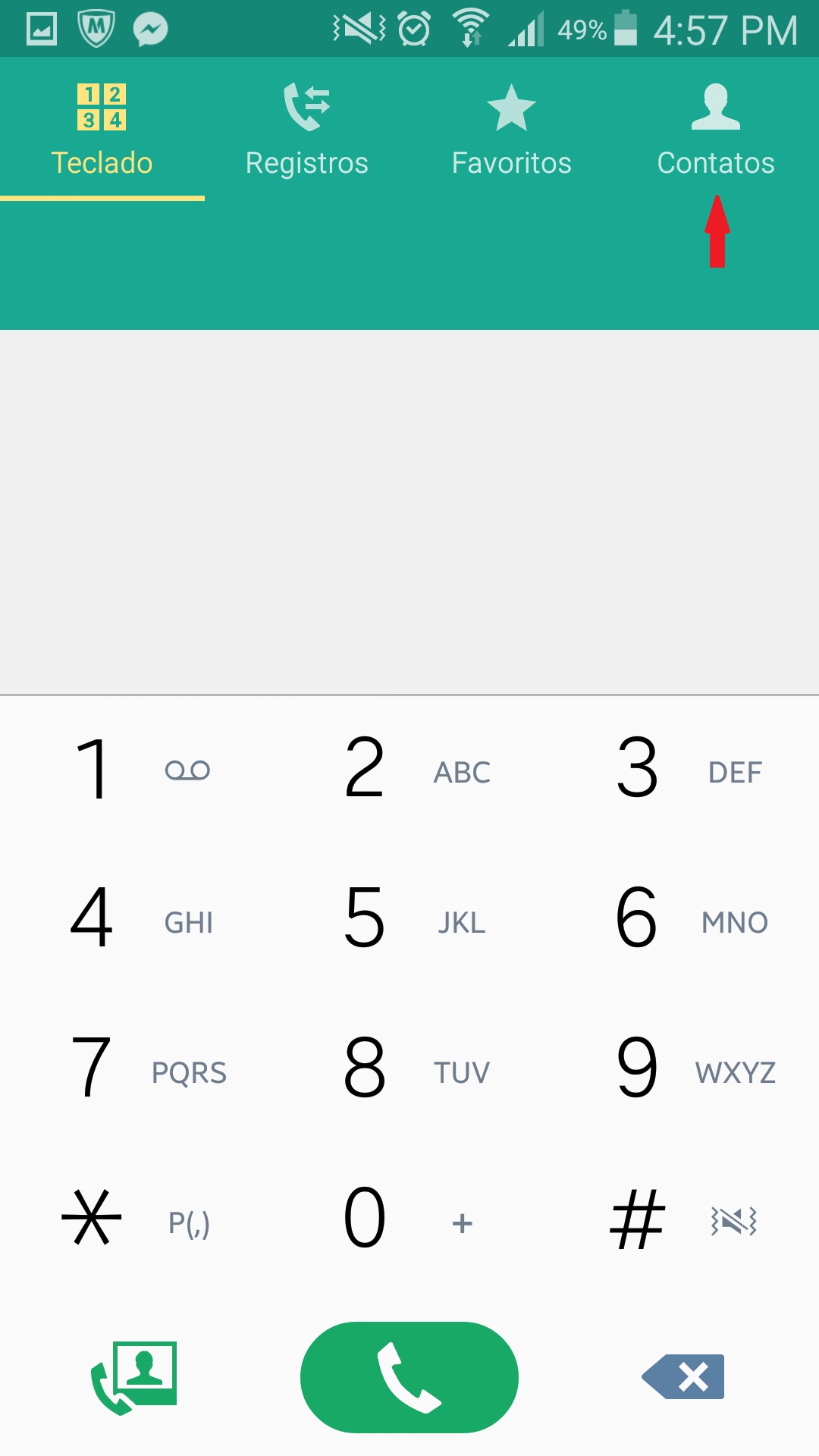 1. Toque no ícone do telefone e selecione Contatos para acessar sua agenda.
