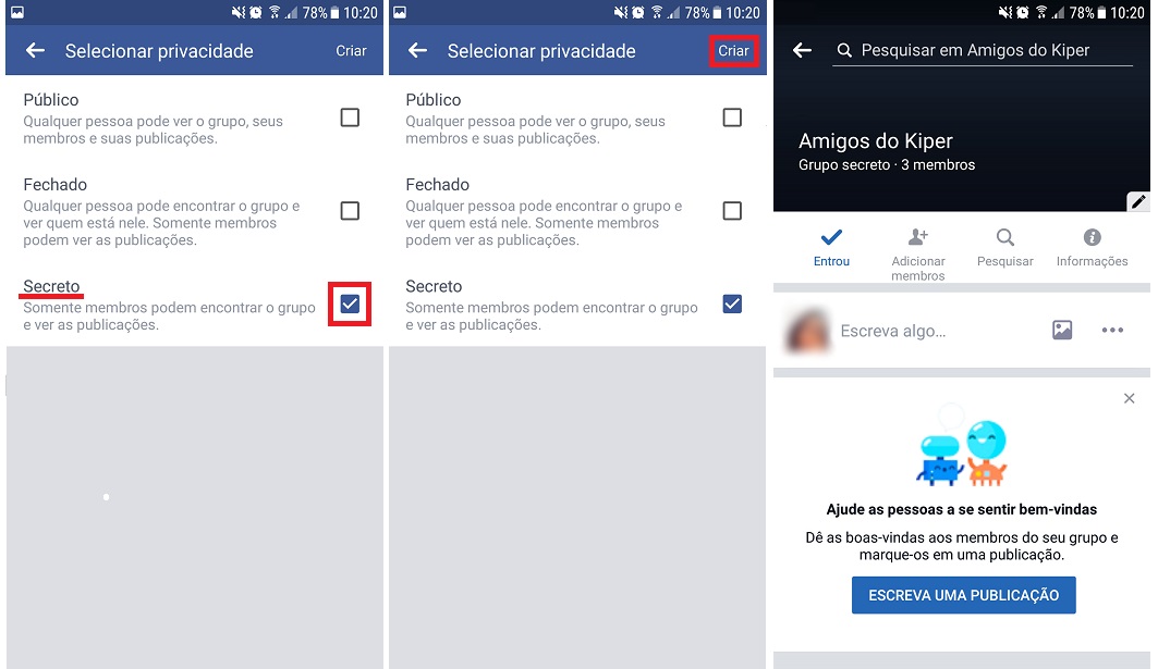 Por fim, selecione a opção Secreto, clique em Criar e pronto! Assim, somente as pessoas que você escolheu colocar no grupo vão conseguir ver o que for publicado nele.