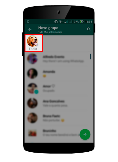 - Adicione os contatos que deseja ao grupo a partir da sua lista telefônica. Clique na seta verde quando terminar.