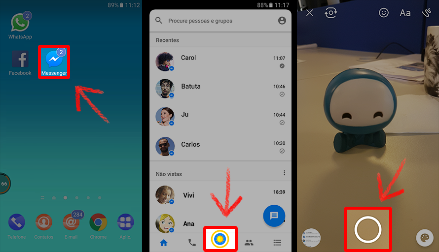 Depois do Instagram Stories e do novo status do WhatsApp, agora também é possível tirar fotos ou gravar vídeos, acrescentar textos, animações e desenhos, e mostrar para os nossos amigos por meio do bate-papo do Facebook.