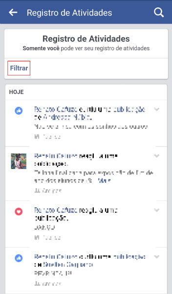 Saiba como rever conteúdos específicos em seu registro de atividades