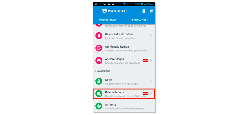 Como adicionar fotos na Galeria Secreta do PSafe Total