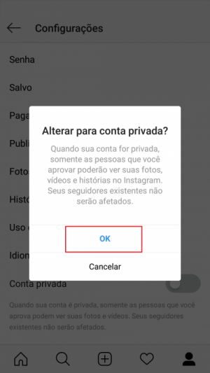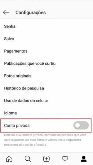 Esta função deixa o seu perfil bloqueado para qualquer pessoa que não seja sua seguidora. Dessa forma, as suas fotos não ficarão públicas e expostas para todos os usuários da rede.