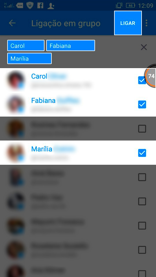 Com as recentes atualizações do aplicativo, agora é possível efetuar uma ligação com vários amigos sem ser pelo chat em grupo. Basta selecionar os amigos que você deseja conversar e iniciar a conferência.