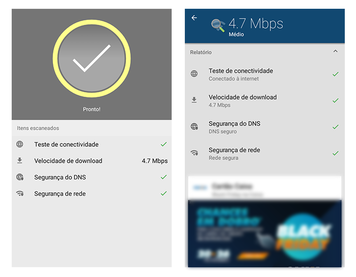 Existem aplicativos que verificam a segurança da sua rede de internet antes mesmo de você se conectar. O dfndr security, aplicativo gratuito de segurança, por exemplo, além de antivírus, também conta com a função WiFi Check, que verifica se a sua rede está segura ou não, além de mostrar a velocidade da sua internet. É simples e rápido. Confira: