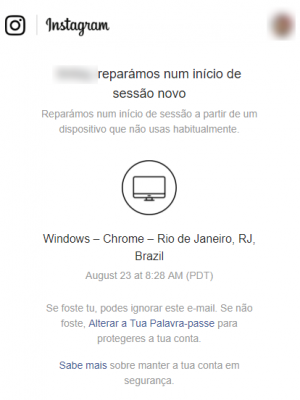 A partir do desvínculo, quem tentar acessar seu perfil e errar a senha, vai ativar o envio de um e-mail sobre login em local desconhecido, como este da imagem abaixo.