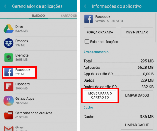 Lembramos que nem todos os apps podem ser transferidos para o cartão de memória, pois alguns deles funcionam apenas quando estão salvos na memória do aparelho.