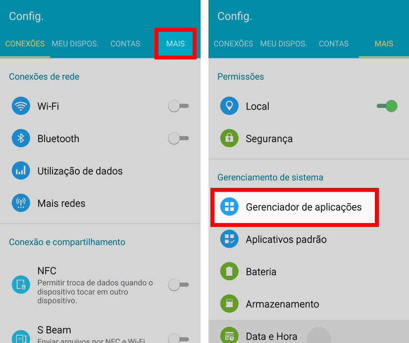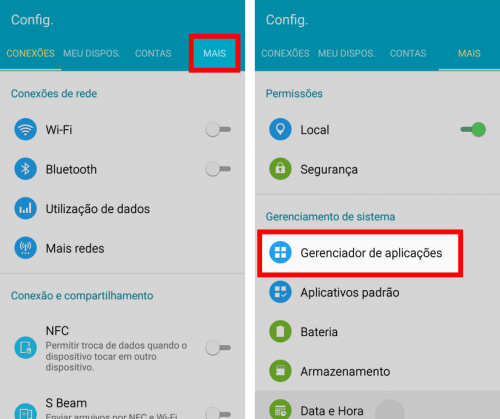 - Vá para as Configurações, toque em Mais e, depois, em Gerenciador de aplicações;