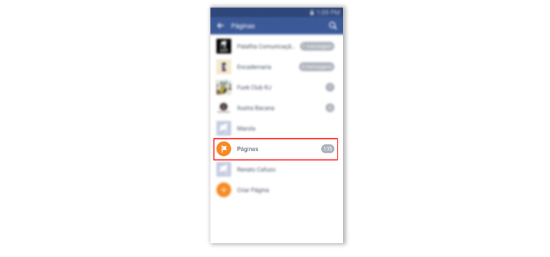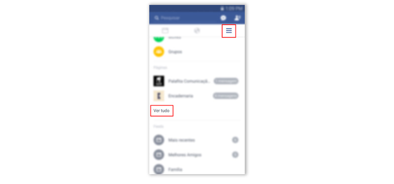 Passo 1: Abra o Facebook e toque nas três barras na parte superior da tela. Vá até a lista de páginas, toque em “Ver todos”.