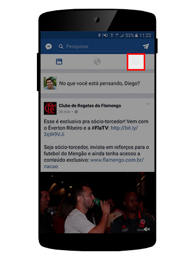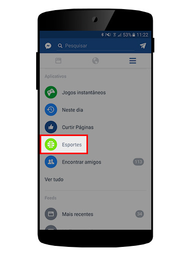 Entre na sua página no Facebook. No canto superior direito, nas três barras horizontais, aperte e depois escolha Esportes. Uma nova tela apareceu no visor do celular, agora basta escolher o campeonato que deseja ver (Brasileirão). As partidas vão sendo atualizadas de acordo com os jogos que estiverem rolando.