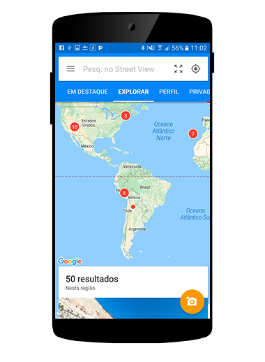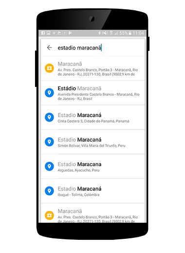 Baixe o app no Play Store. Depois digite o que você quer buscar (Estádio do Maracanã, por exemplo). Depois só dar o Ok e esperar aparecer o mapa da onde fica o estádio. Logo abaixo haverá a foto real do estádio.