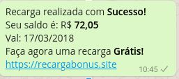 O golpe é compartilhado através de um link pelo WhatsApp e, ao tocar na mensagem, o usuário é encaminhado a uma página falsa. Para receber a suposta recarga de crédito no celular, ele precisa compartilhar o link da armadilha com seus contatos do WhatsApp até que uma barra seja completada.