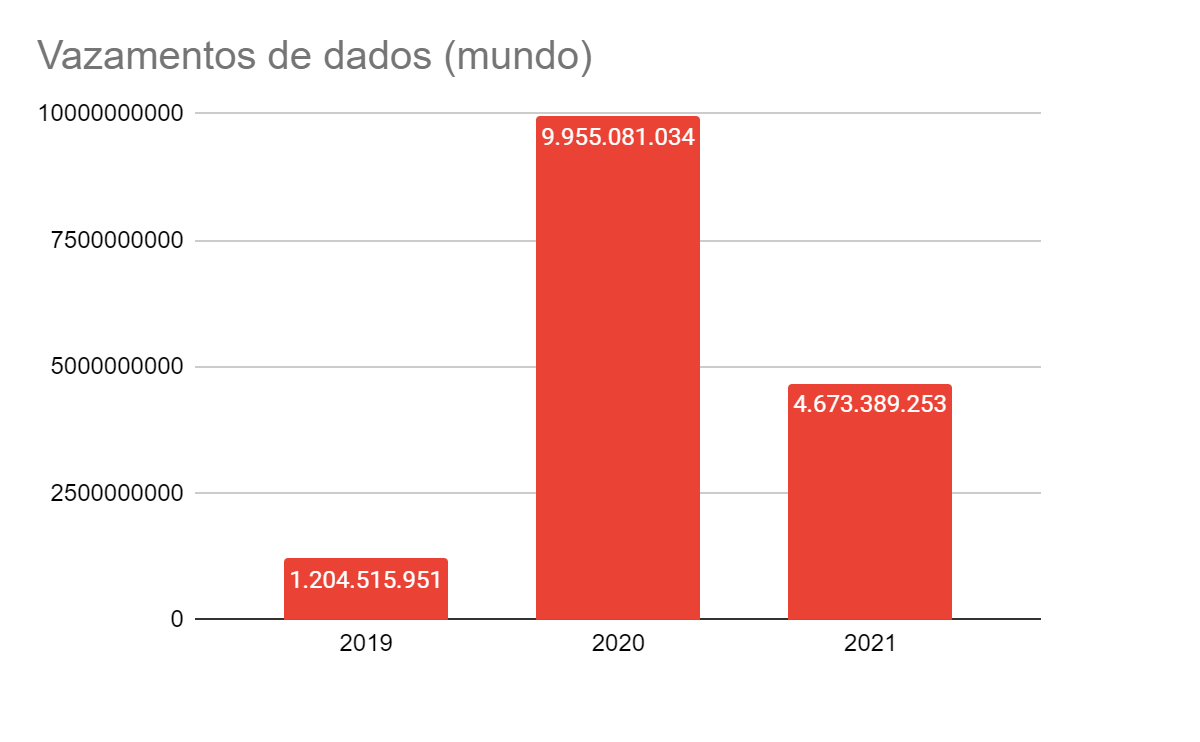 O número de credenciais vazadas no mundo cresceu 726% de 2019 a 2020. PSafe estima que os incidentes de segurança de 2021 ultrapassem o total de 2020.