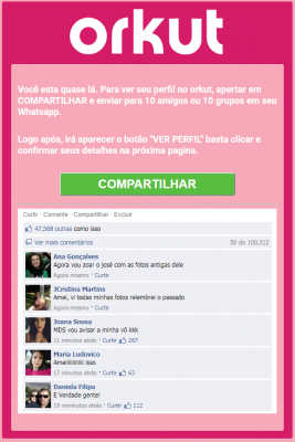 Golpes como esse do “Acessar Orkut” são muito comuns e fáceis de espalhar pela internet.