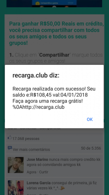 Mais um golpe está circulando pelo WhatsApp. Desta vez, os criminosos oferecem um crédito falso de R$ 50 para o celular. Em apenas um dia, o dfndr security – único aplicativo de segurança com proteção em tempo real contra ataques no WhatsApp, Facebook e SMS – realizou 1, 7 milhão de bloqueios da falsa promoção e o número não para de subir.