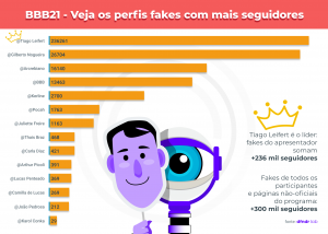 Confira o ranking dos perfis falsos dos BBBs com mais seguidores: