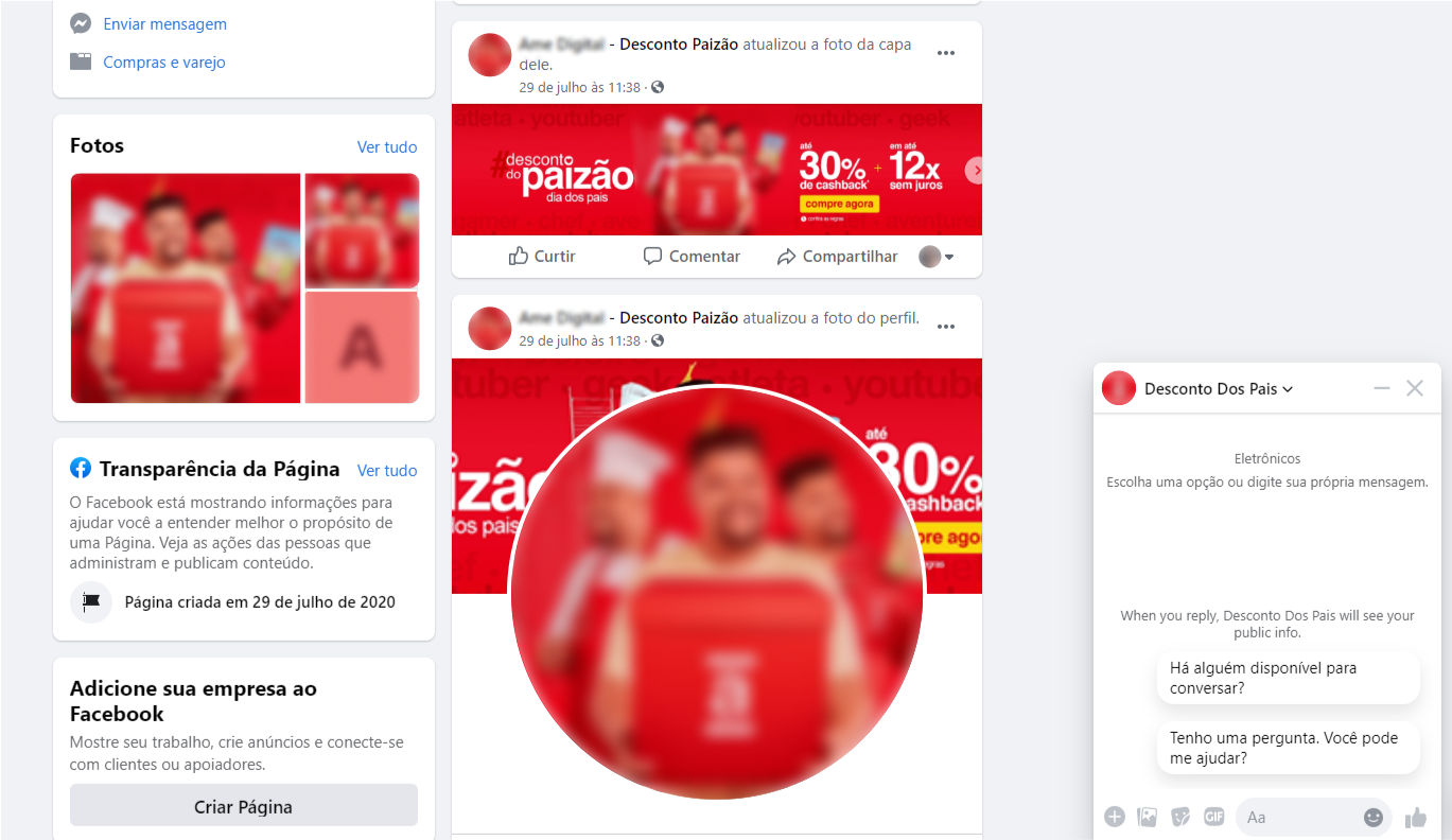 O dfndr lab, laboratório de segurança digital da PSafe, detectou 137 perfis falsos no Facebook com supostas ofertas para o Dia dos Pais. As contas fakes tentam se passar por grandes lojas do comércio virtual, utilizando indevidamente nomes como Americanas.com e Ame Digital, e oferecendo falsas promoções para roubar dados bancários das vítimas. Golpes no WhatsApp utilizando indevidamente o nome da Leroy Merlin, em supostas promoções, também foram identificados. Até o momento mais de 157 mil detecções aos links maliciosos foram feitas pelo dfndr lab.