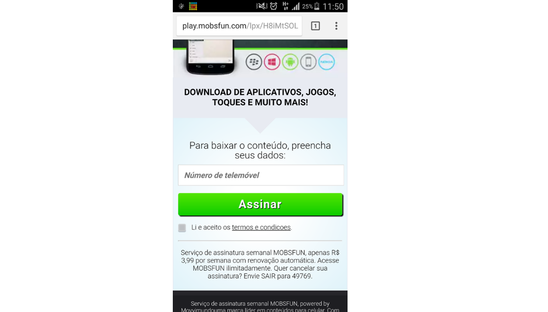 Para finalizar o processo de personalização, é necessário informar o número do celular e clicar em “Assinar”. Pronto, golpe aplicado!
