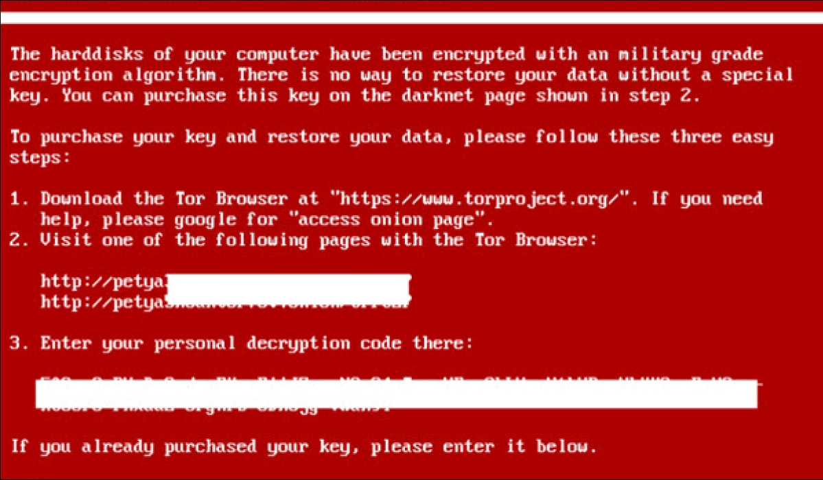 Depois de explorar as vulnerabilidades do Windows, o Petya criptografa o registro mestre de inicialização, entre outros arquivos. Em seguida, envia uma mensagem ao usuário para conduzir uma reinicialização do sistema, após a qual ele fica inacessível.