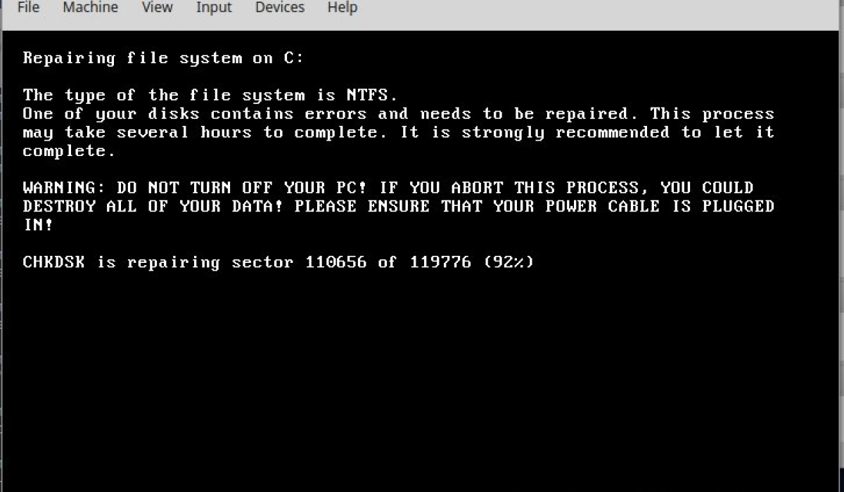 Este alerta indica a ocorrência o processo de criptografia, ou seja: enquanto o computador não estiver ligado, seus arquivos estão a salvo. Desconecte o dispositivo da rede e certifique-se de que apenas um profissional da área de segurança da informação tente fazer a reinicialização da máquina e formate seu disco rígido.