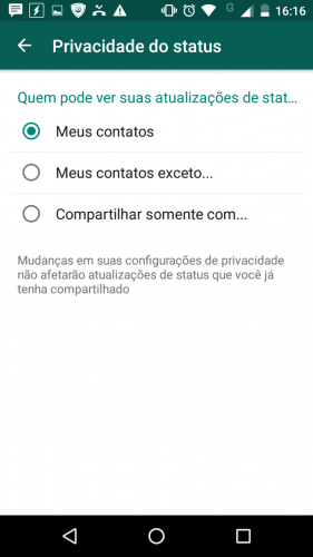 Passo 1: Escolher quem pode ver seus Status do WhatsApp