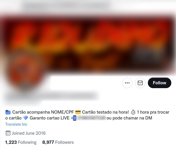 Os mais de 1.000 perfis encontrados estão sendo utilizados para aplicar e disseminar golpes financeiros, incluindo a divulgação de dados de cartões clonados e golpes de PIX