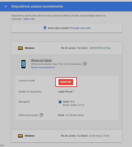 Modo 1: A partir de “Minha conta”, escolha a opção “Como fazer login no Google”. Desça até a seção de dispositivos e clique em “Consultar dispositivos”. Clique no que deseja para escolher a opção “Remover”.