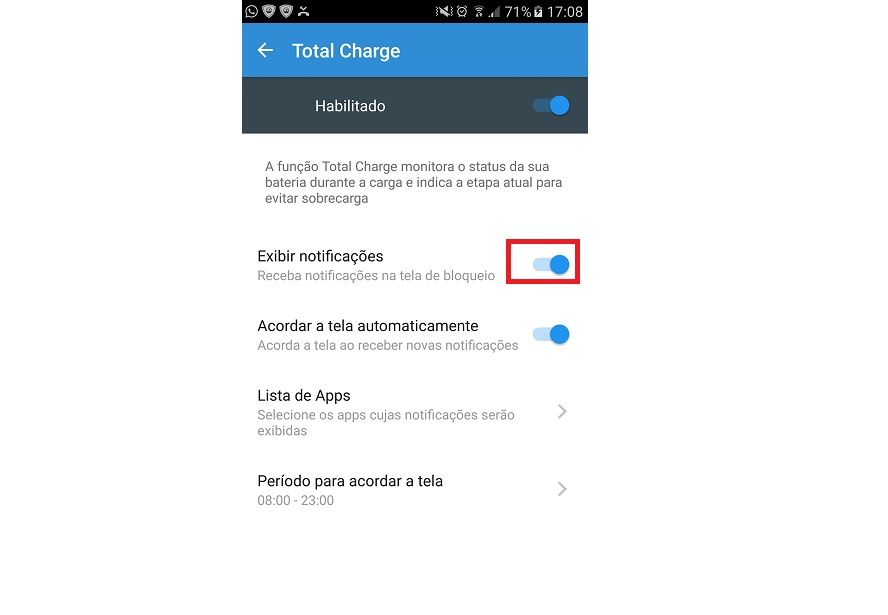 Além de monitorar a sua bateria, com o Total Charge você também pode controlar o recebimento de notificações de outros aplicativos. Basta seguir o passo a passo: