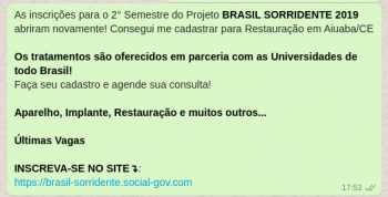 O dfndr lab, laboratório especializado em segurança digital, identificou um novo golpe que finge ser um programa social do governo para promover um suposto tratamento odontológico 100% gratuito à população. Intitulado como “Brasil Sorridente”, o ataque já afetou 165 mil pessoas que receberam, acessaram ou compartilharam o link malicioso desde o mês de maio. Por dia, são registrados, pelo menos, 2012 novos acessos à fraude.