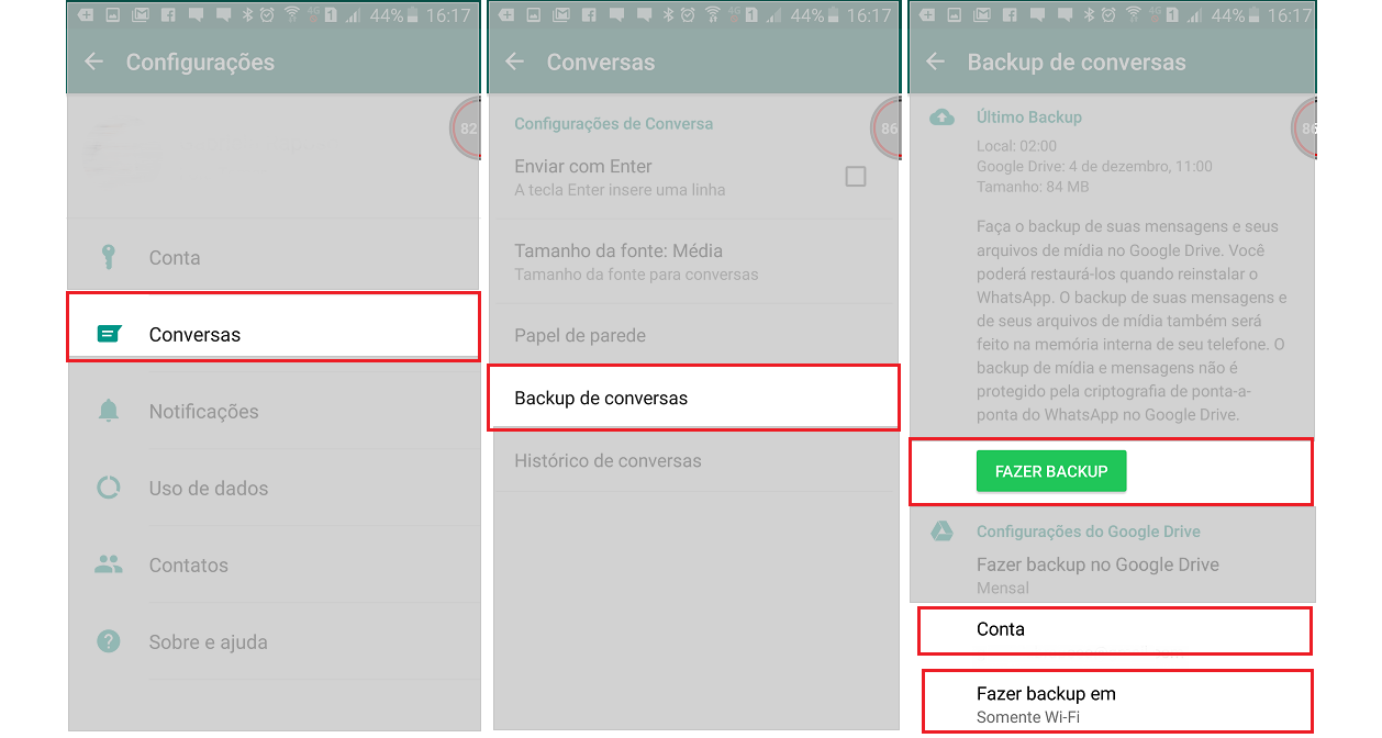 Fazendo o backup do WhatsApp pelo Google Drive: