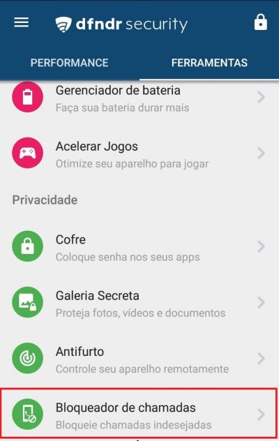 - Deslize a lista de ferramentas e encontre a opção Bloqueador de Chamadas.