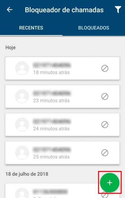 - Além de conferir os números na sua lista de bloqueados você também pode adicionar contatos da sua agenda.