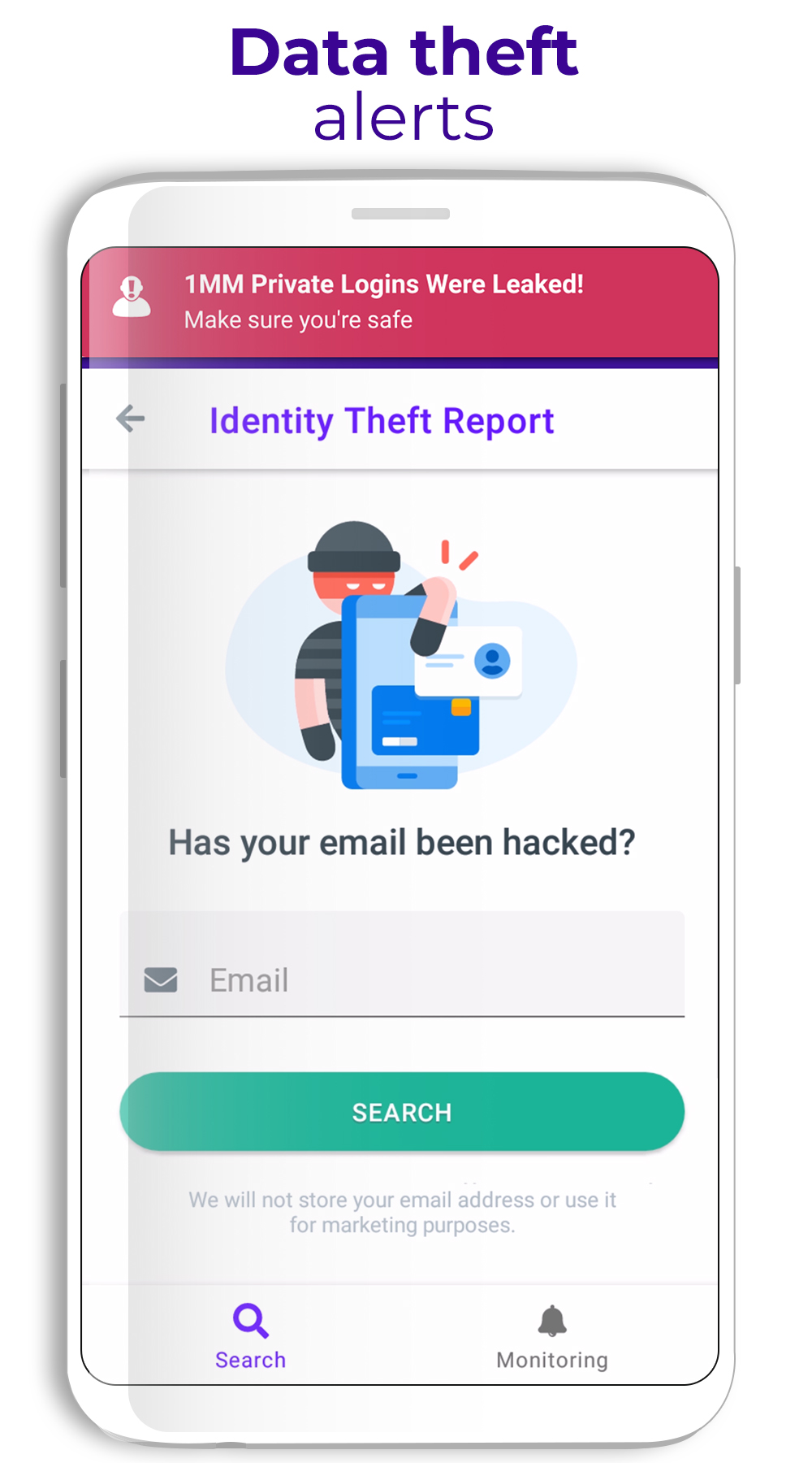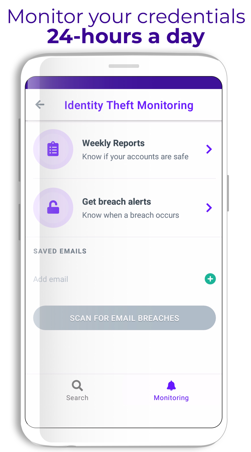 Have your digital credentials monitored 24/7 and receive alerts in case they get leaked.