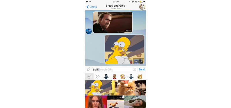 Ahora con la actualización de Telegram, en su versión 3.4 para Android, permite compartir gifs en sus ventanas de chat, lo cual ya había hecho Facebook Messenger y otras apps con menor número de usuarios. La diferencia es que de acuerdo con el equipo de Telegram los gifs en esta app se envían hasta 20 veces más rápido y nuestros favoritos se pueden guardar en un apartado especial para reenviarlos cuando gustemos.