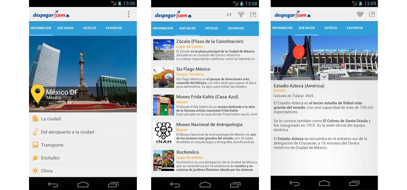 Esta aplicación llega de la mano con Despegar.com gratis para tu Android con la cual podrás consultar diferentes informaciones del DF, como los principales lugares y museos turísticos, además de conocer las rutas del transporte, el clima, entre otros. Las herramienta presenta también oferta de hoteles e incluso dejar recomendaciones para otros usuarios.
