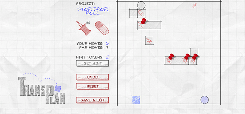 TransPlan es un juego de estrategia y rompecabezas, se pareciendo bastante a Brain Dots. En él, tienes un solo objetivo: llevar el objeto pintado de azul hasta el local indicado también en azul. Para eso, deberás modificar el escenario de la forma con que te parezca mejor, utilizando el menor número de movimientos posibles. ¡Borra elementos, fija otros con alfiler y crea un plan perfecto!