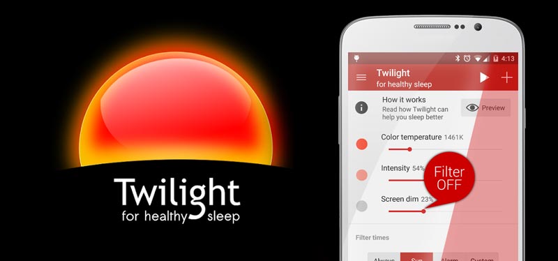 Twilight es una aplicación especialmente pensada para ayudar el usuario a relajar. Se basa en un fenómeno físico y biológico que estimula nuestro cerebro a descansar o, si prefieres, más despierto dependiendo de los colores expuestos a nuestros ojos. ¡Luego, la app básicamente le aplica un filtro a la pantalla del celular evitando que la luminosidad te quite el sueño!