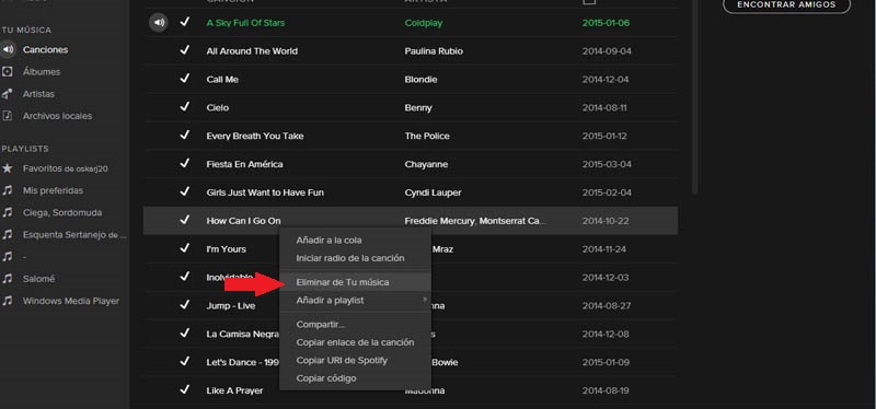 En caso encuentres una canción duplicada, cliquea en el botón derecho del mouse y selecciona ‘Eliminar de tu música’.