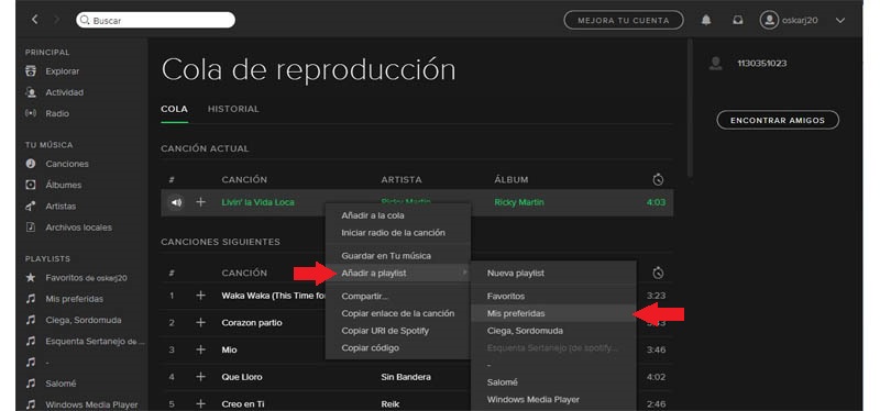 Posteriormente aparecerá en color verde dentro de Cola de reproducción. Debes dar clic derecho y seleccionar ‘Añadir a playlist’.