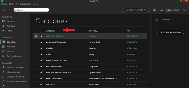 En la lista de temas, cliquea en ‘Canción’ para que las organices alfabéticamente. De ese modo, si tienes alguna guardada con el mismo nombre la podrás identificar. Lo malo es que tendrás que ver toda tu lista.