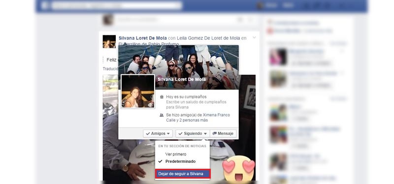Pero si lo que quieres es que ya no te aparezcan noticias de alguna persona, pero no deseas eliminarla, solo debes dar clic en la opción ‘Dejar de seguir’, aunque esta opción ya estaba disponible hace un tiempo, pero si no lo sabías, ya tienes el dato 😉
