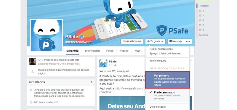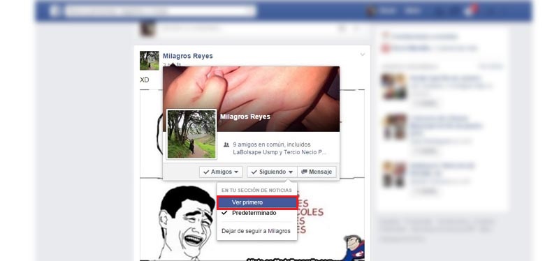 Seguidamente da clic en el caja que dice ‘Siguiendo’ y elegir ‘Ver Primero’.