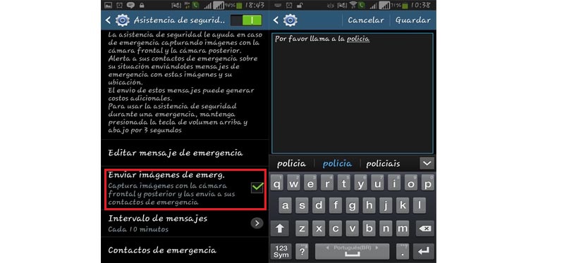 Algunos aparatos Android, como el Samsung Galaxy S4, cuentan con una “Asistencia de Seguridad”, la cual sirve para alertar a tus contactos sobre una situación de riesgo. Mediante un comando simple, como apretar los dos botones del volumen al mismo tiempo por tres segundos, envías un mensaje predeterminado, tu ubicación y fotos para tus contactos seleccionados.
