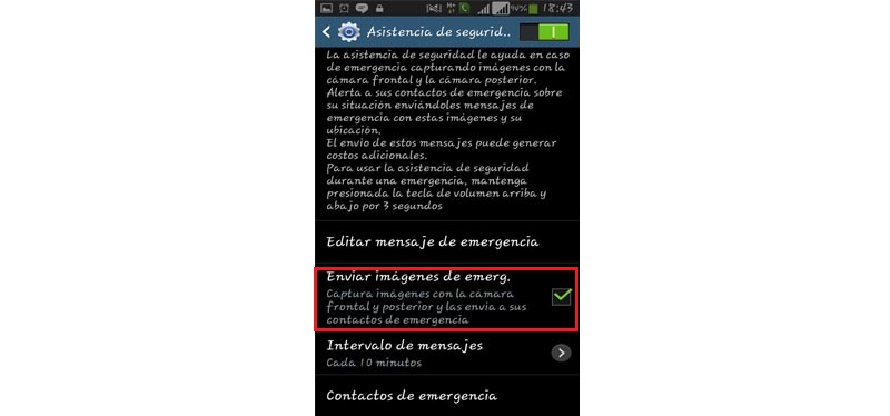 En “Configurar” o “Configuraciones” ingresa a “Asistencia de seguridad” y activa esta opción arrastrando el botón, ubicado al lado del nombre, hacia el lado derecho. Este se mostrará de color verde como señal de estar activado. Ahora solo desliza la pantalla para editar las opciones cliqueando en cada una de ellas para alterarlas.