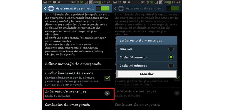 Define el intervalo de envío de las informaciones (fotos, texto y ubicación).