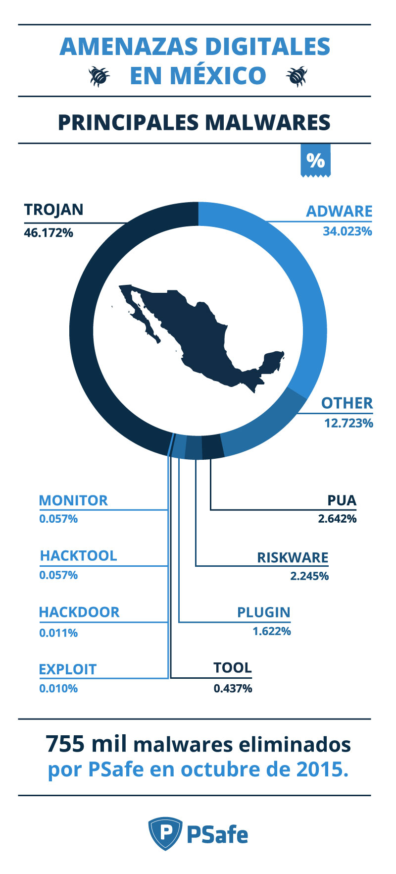 Los troyanos y adwares son los principales malwares detectados en la base de usuarios de PSafe Total en México, lo cual representa una puerta de entrada para otras amenazas cibernéticas que pueden acarrear serios dolores de cabeza – y de bolsillo – de los usuarios mexicanos.